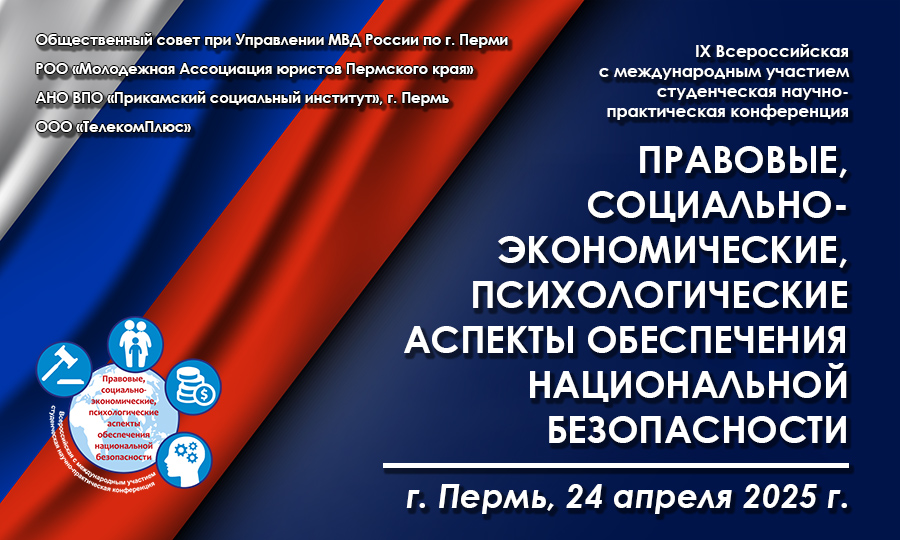 Прикамский социальный институт приглашает 24 апреля 2025 года обсудить проблемы обеспечения безопасности личности, общества и государства на площадках IX Всероссийской с международным участием студенческой научно-практической конференции «Правовые, социально-экономические, психологические аспекты обеспечения национальной безопасности».