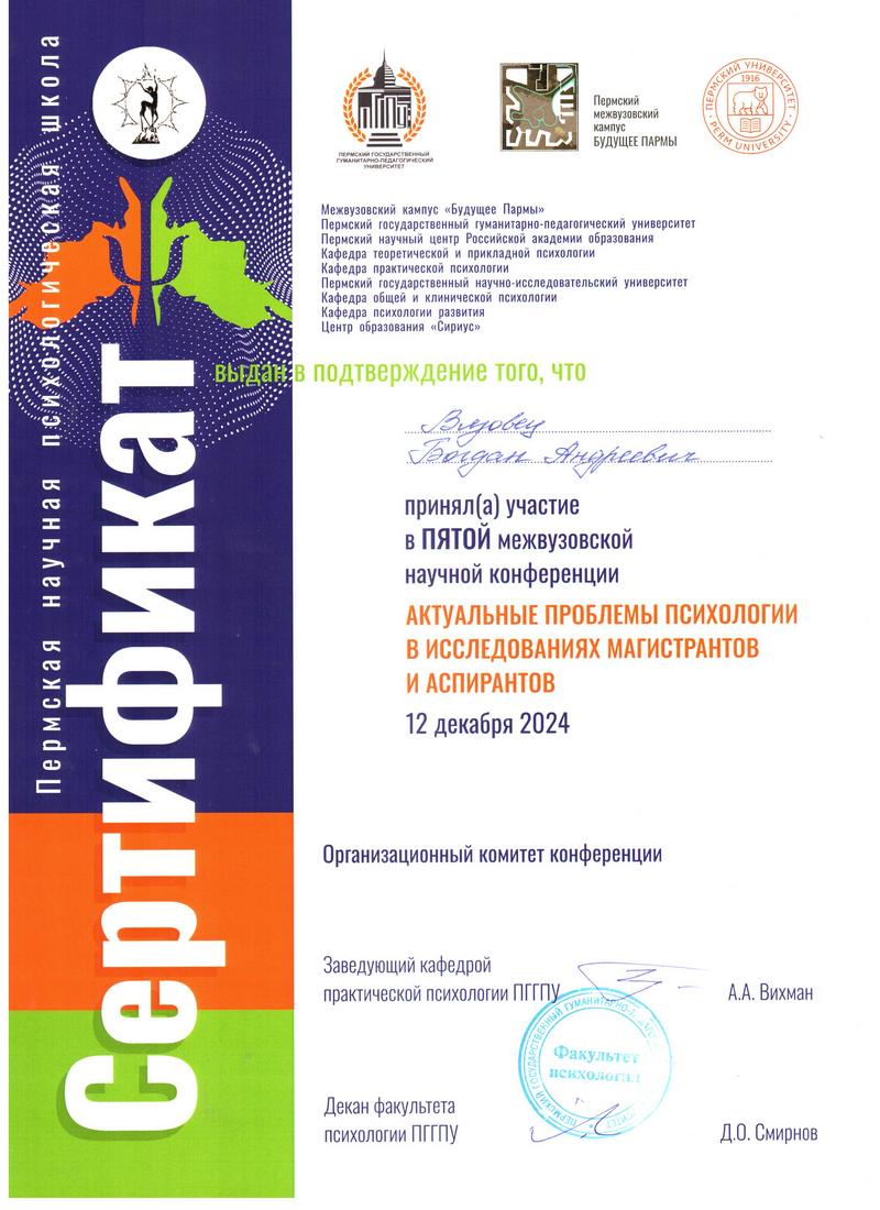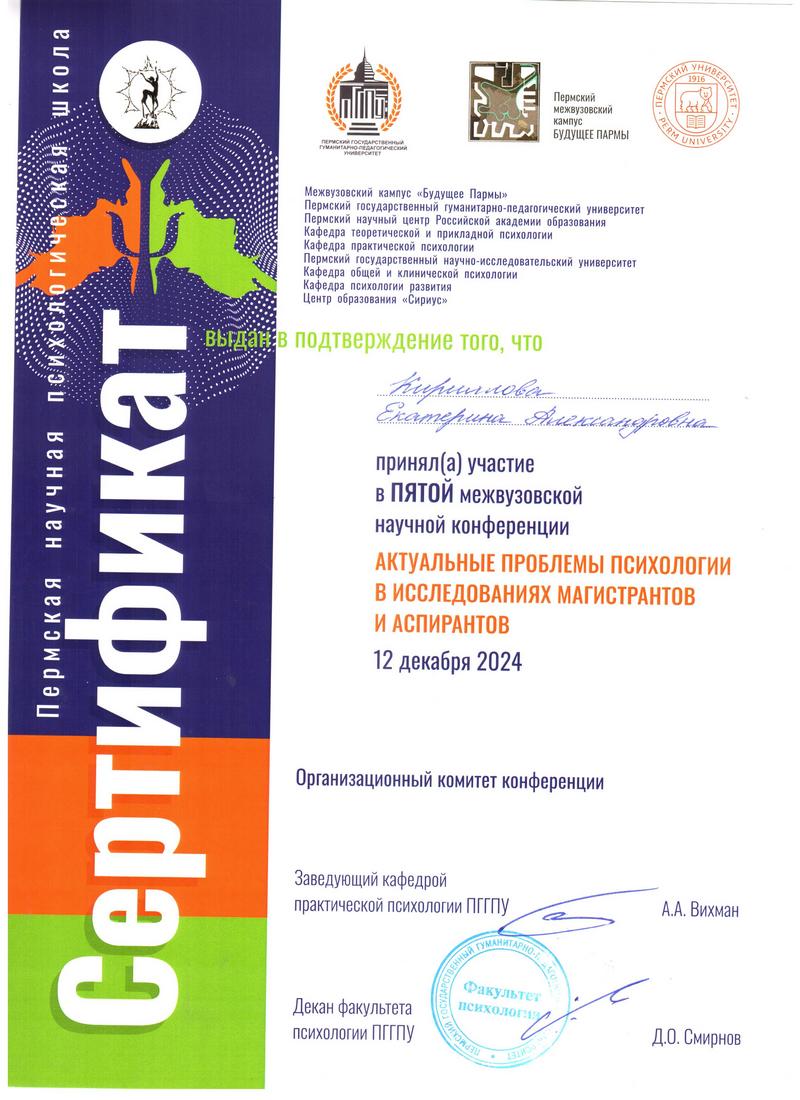 12 декабря 2024 года в Пермском государственном гуманитарно-педагогическом университете проходила 5 межвузовская научная конференция «Актуальные проблемы психологии в исследованиях магистрантов и аспирантов».