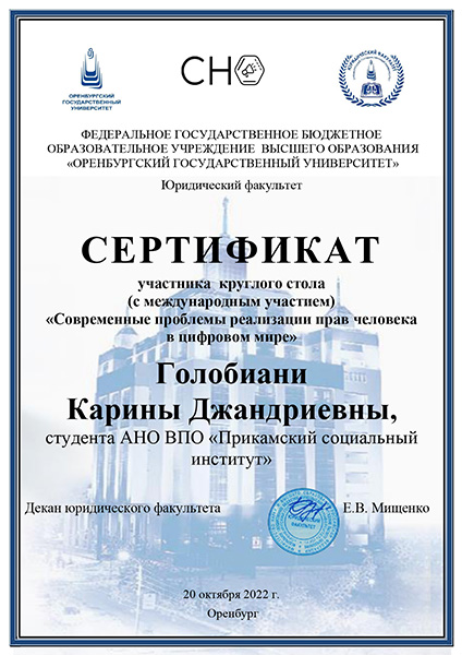 26 апреля 2023 года в Прикамском социальном институте состоялась VII Всероссийская с международным участием студенческая научно-практическая конференция «Правовые, социально-экономические, психологические аспекты обеспечения национальной безопасности».